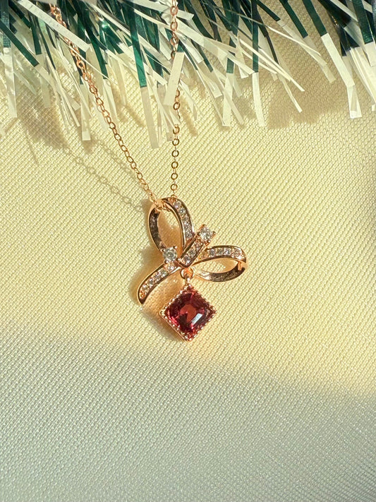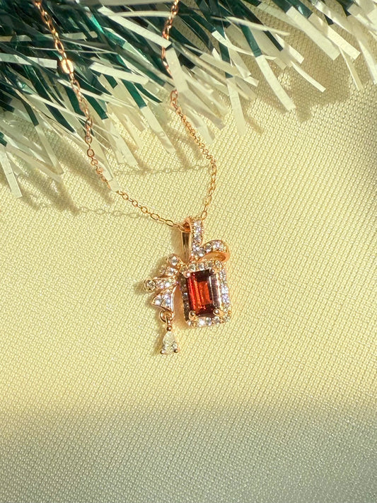 Asscher Cut Rhodolite Garnet Bow Necklace