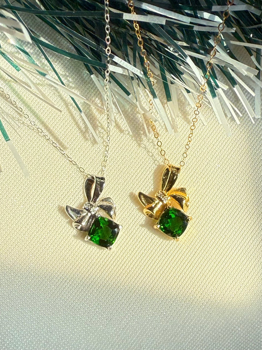 Asscher Cut Rhodolite Garnet Bow Necklace