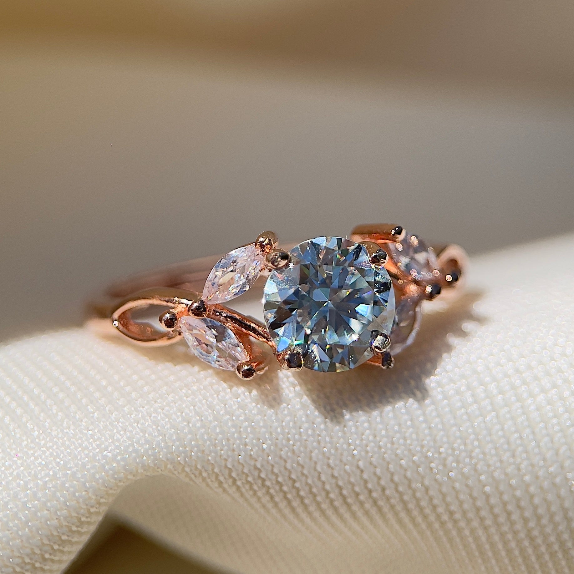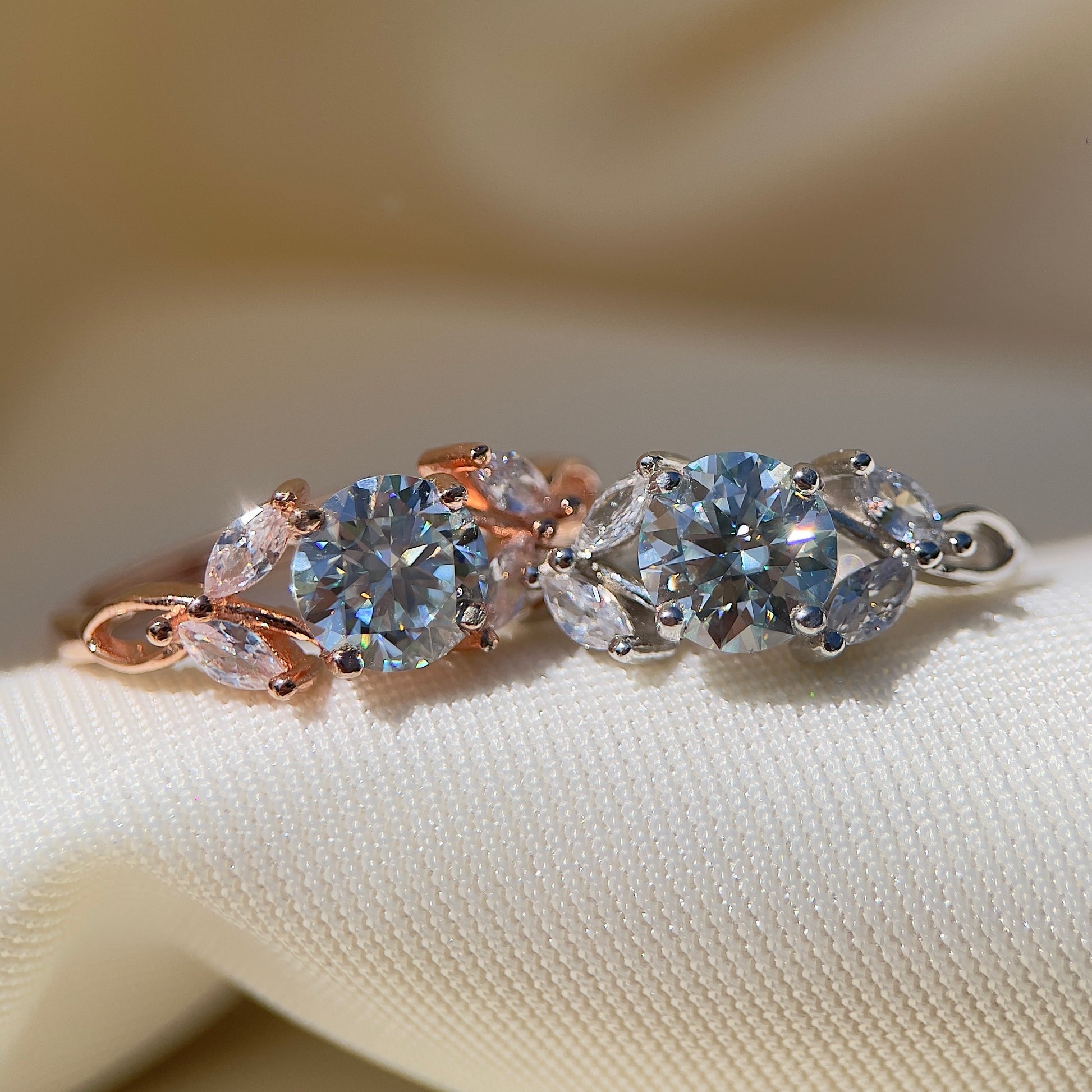 White Moissanite Floral Ring